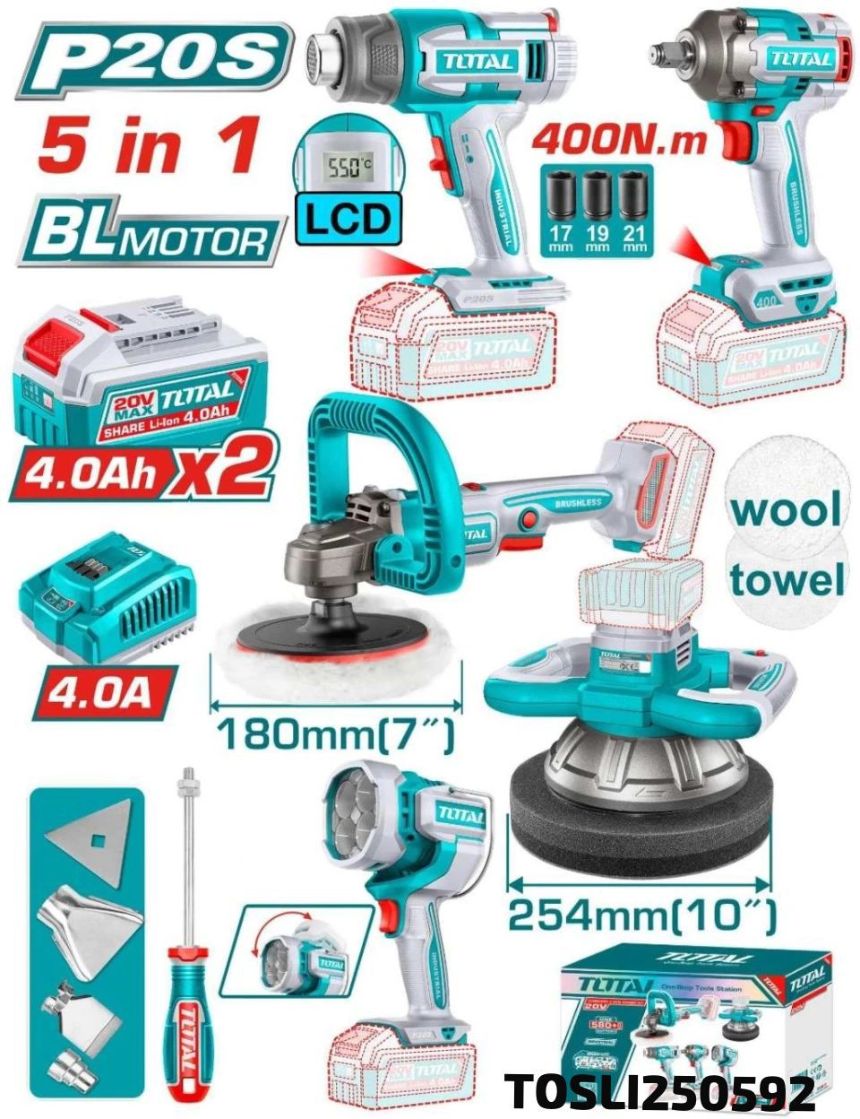 TOSLI250592 — Kit inalámbrico TOTAL 20V de 5 herramientas diseñado para trabajos