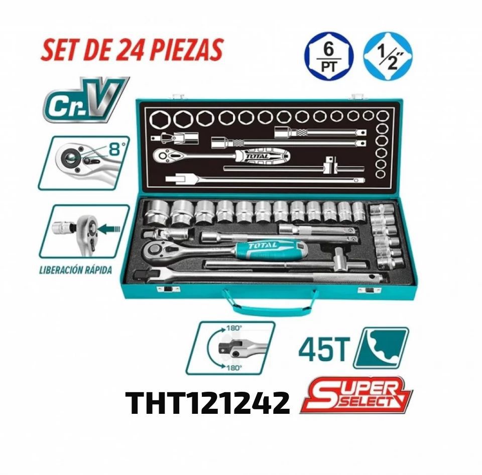 TOTAL JUEGO DE DADOS 1/2″ THT121242 24PCS Incluye: